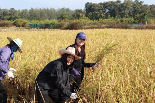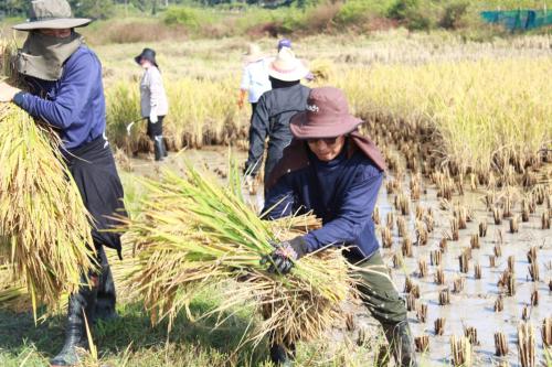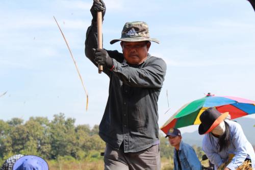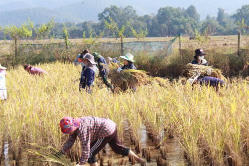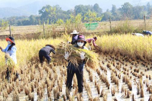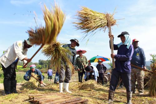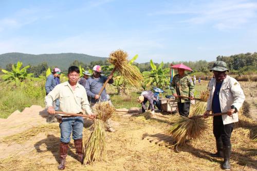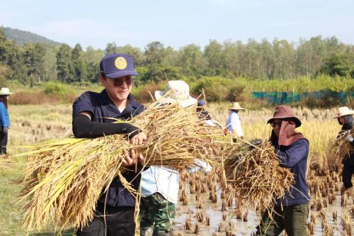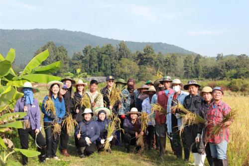 พช.แม่ทา ต่อยอดและขยายผลโครงการตำบลเข้มแข็งตามหลักปรัชญาของเศรษฐกิจพอเพียงตำบลทาสบเส้า ปี 2568 ขับเคลื่อนกิจกรรม “เกี่ยวข้าวพันธุ์พระราชทาน กข 87”